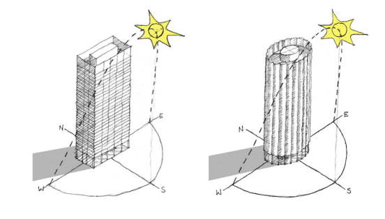 国际建筑事务所 HOK 提出了一个富有启发性的概念——昼夜节律幕墙(Circadian Curtain Walls)。该建筑立面造型如同盛开的花朵,即便是朝向强烈阳光的立面,也能形成自然遮阳。